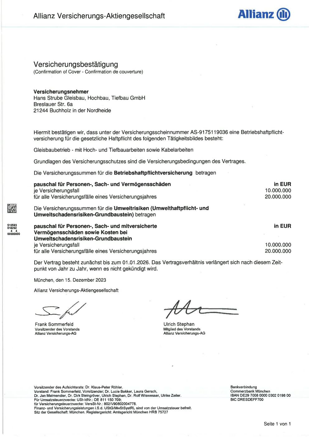 - Versicherungsnachweis Betriebshaftpflicht inkl. Umwelt-Haftpflicht