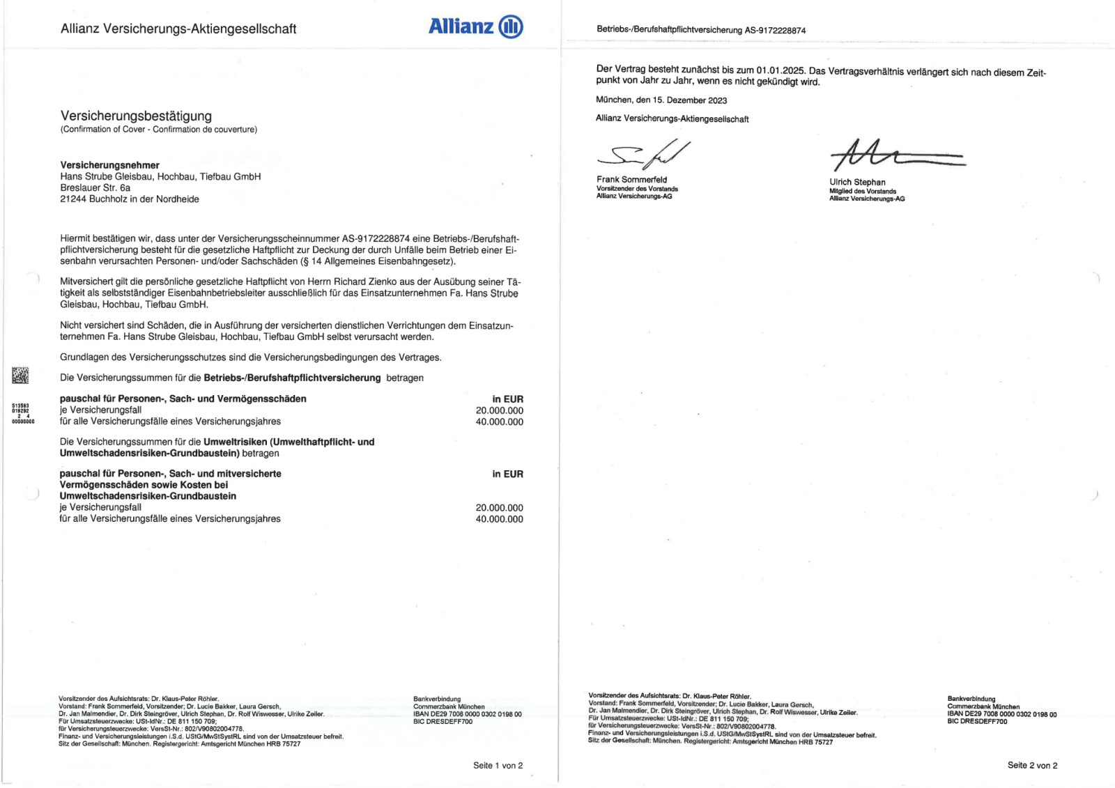 - Versicherungsnachweis Eisenbahnhaftpflicht