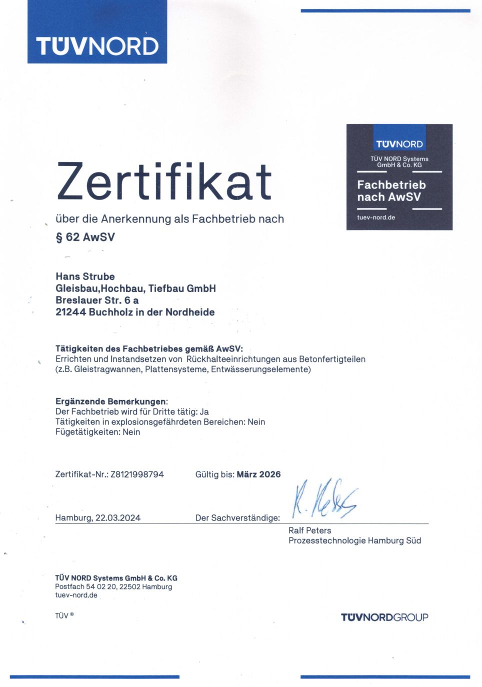 - TÜV Nord Zertifikat nach Wasserhaushaltgesetz (WHG)