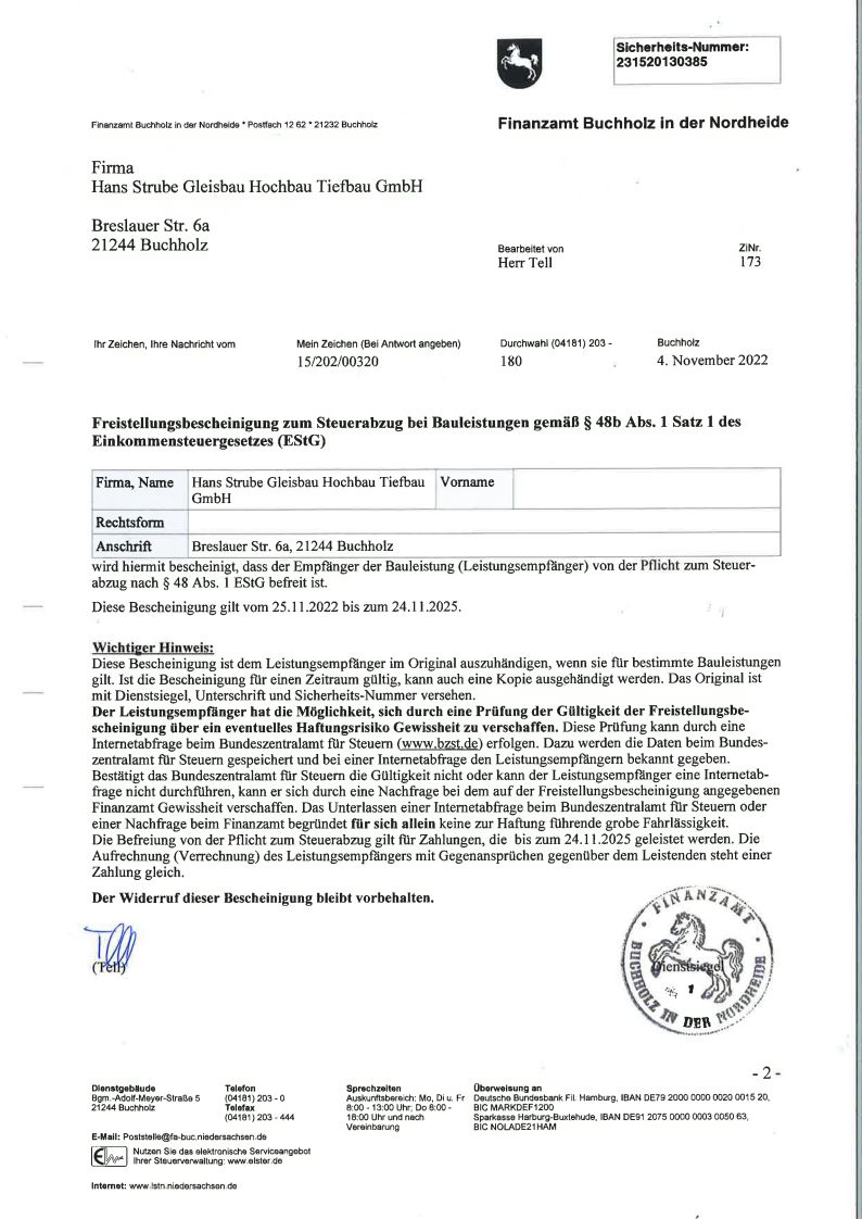 - Freistellungsbescheinigung zum Steuerabzug bei Bauleistungen bis 2025
