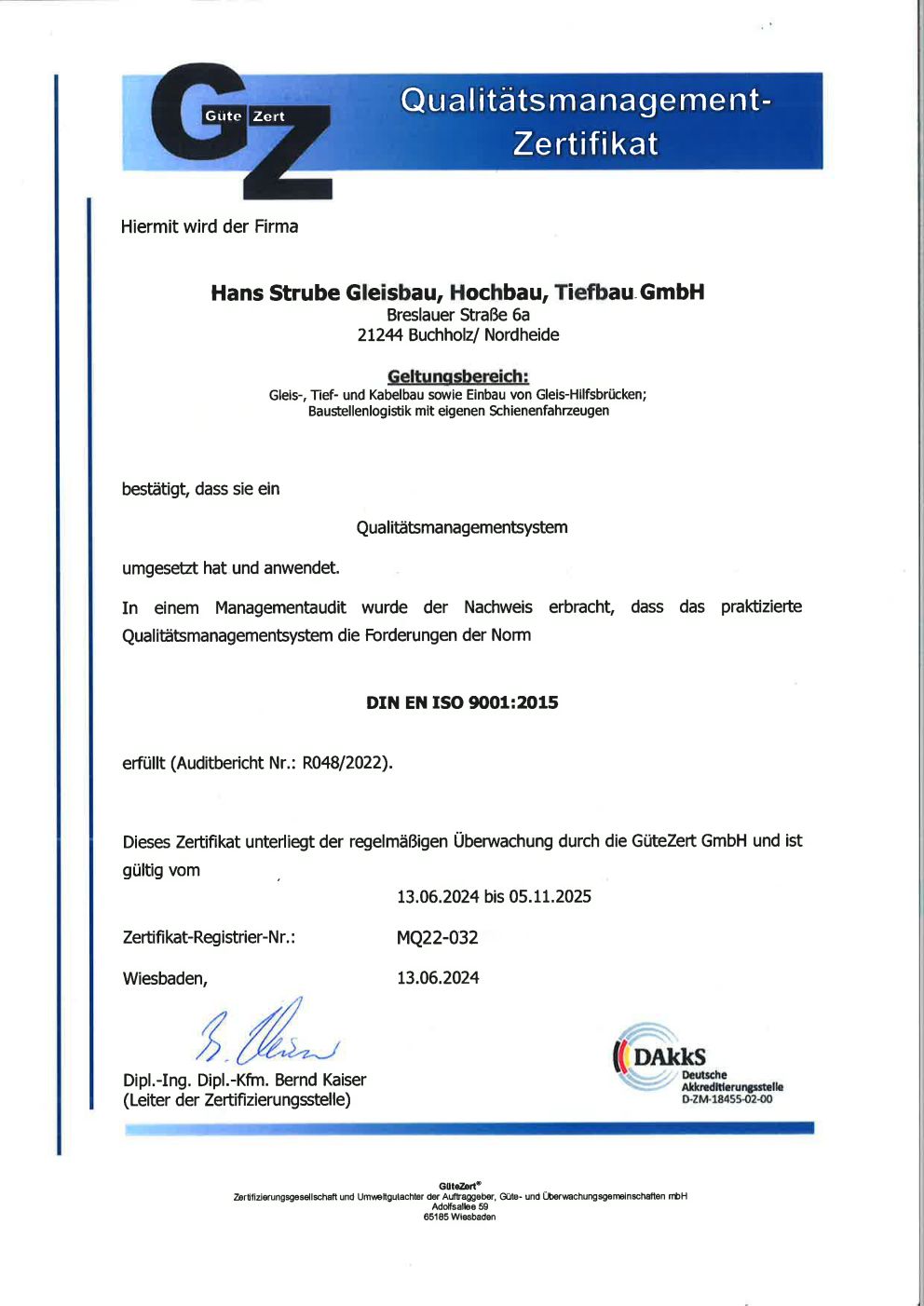 - GZ Qualitätsmanagement nach DIN EN ISO 9001:2015