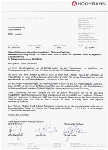 - HHA (Hamburger Hochbahn) Präqualifikationsnachweis Gleise und Weichen